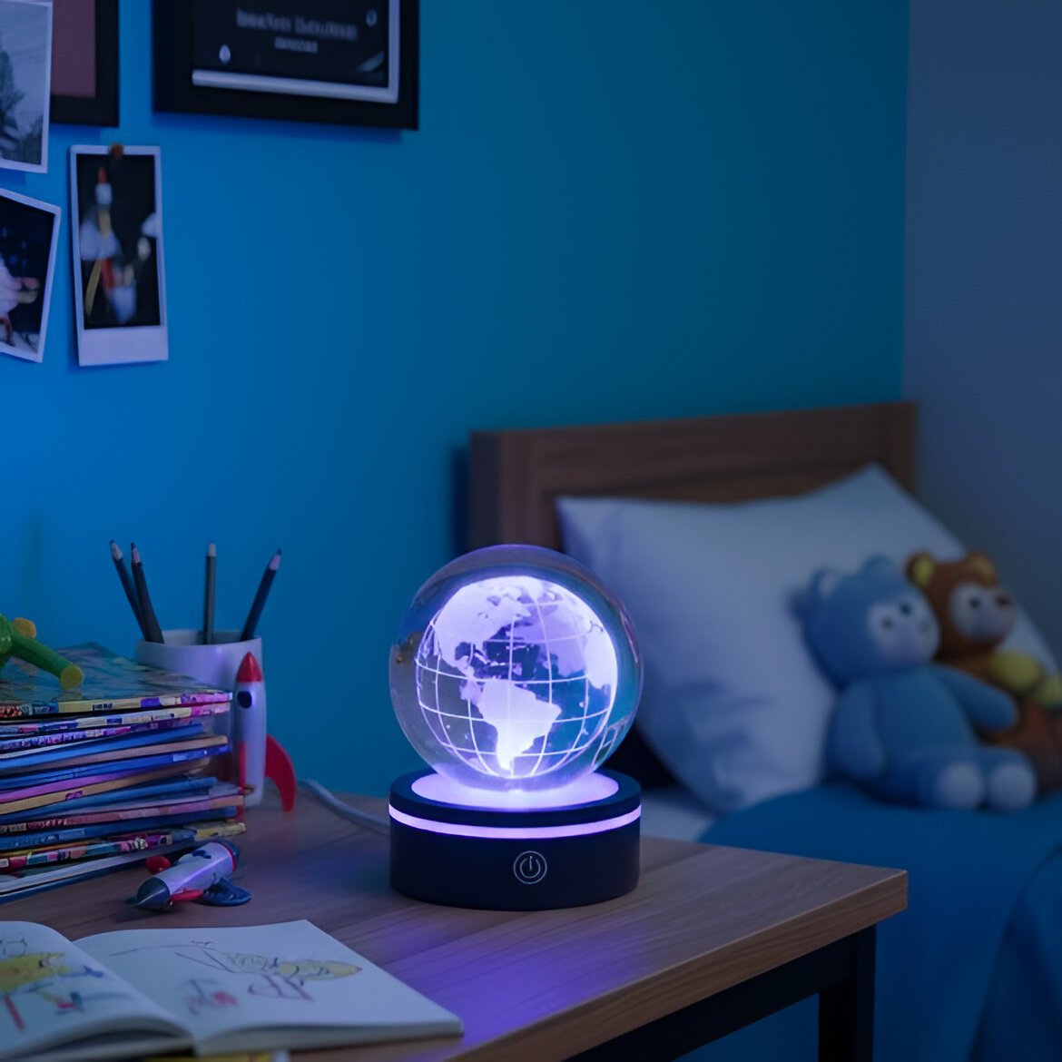 Dolunay Figürlü Dönen Kristal Cam Küre