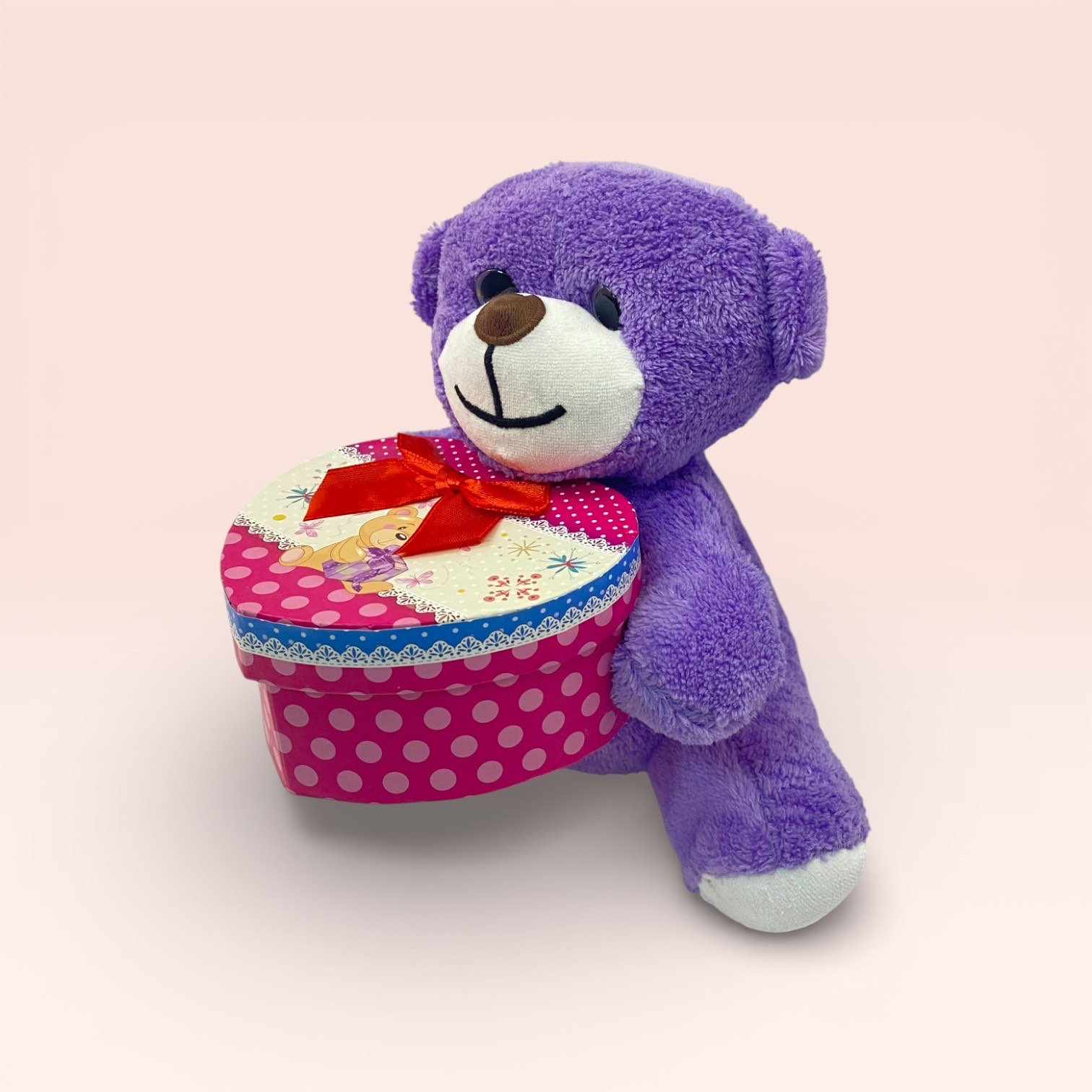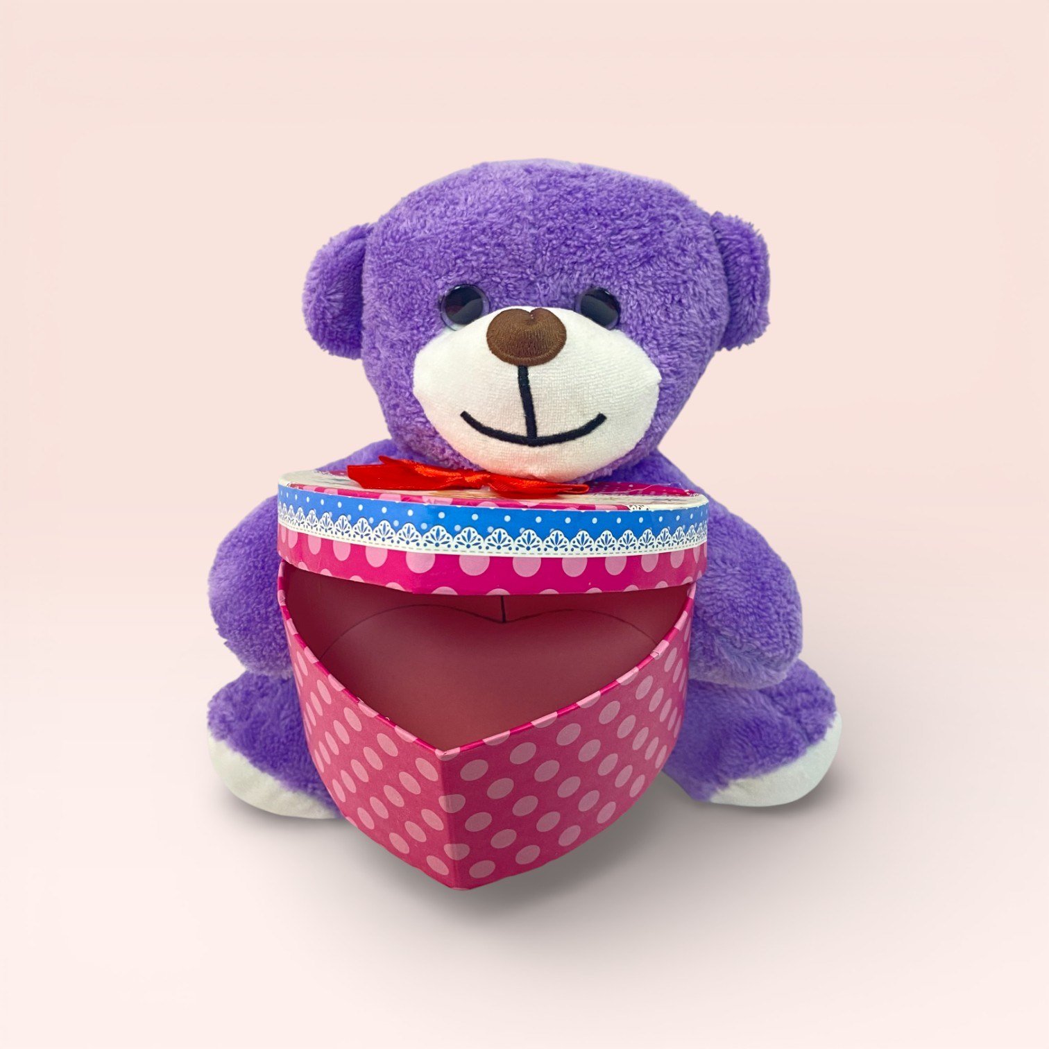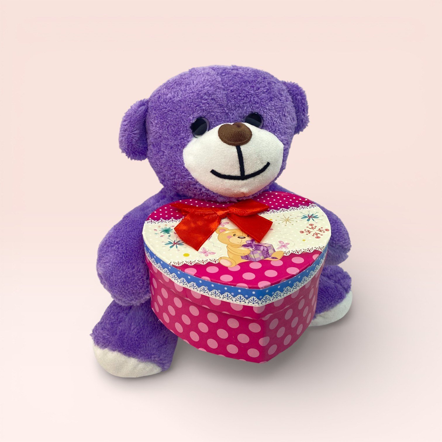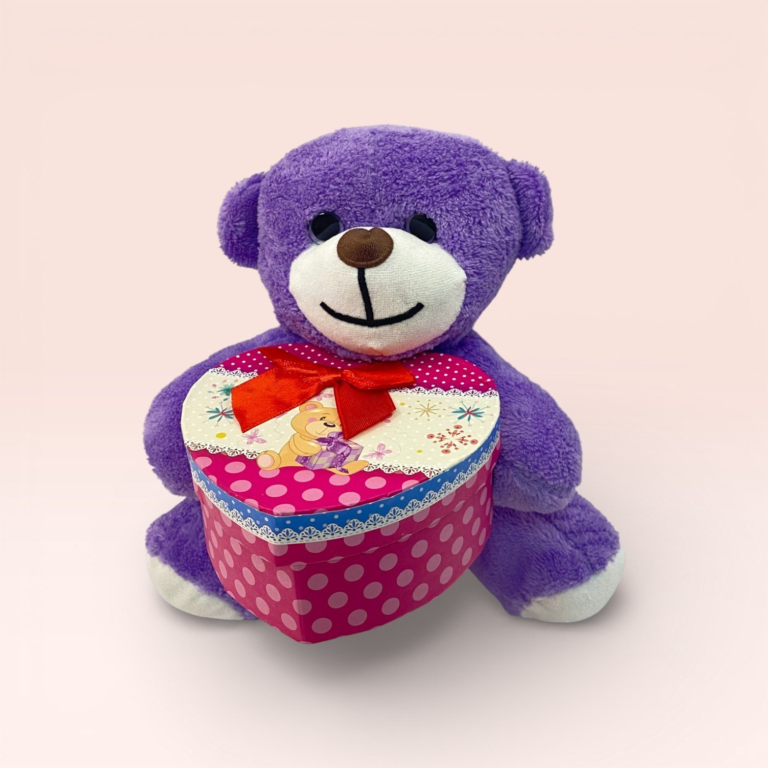 Kalp Kutulu Mor Peluş Ayıcık